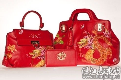 此系列产品共有三件,均源自这个意大利品牌的著名包款,包款传统的W手袋,优雅的Sophia手袋和经典钱夹,全部选择中国文化的吉祥色——大红色,再配以金色的飞龙和莲花刺绣图案,可谓对中国的图腾文化做了一次淋漓尽致的膜拜。不过奢侈品就是奢侈品,即使做成这样,依然不失品牌该有的贵气,做到意大利风范与中国民间艺术的无缝衔接,在保持Salvatore Ferragamo的高雅格调的同时,更加营造了一派喜庆祥和的氛围,展露出浓浓的中国传统艺术与民俗风情。这样的包给妈妈们用倒是非常合适的。