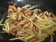 <br/>生姜油锅煸香,倒入肉丝翻炒。</li><li>5