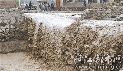 在受灾最严重的岷县茶埠镇,沟门村65岁的村民纪邴禄心有余悸地回忆起冰雹洪灾:“刚开始下雨后,家人还没有意识到,我打着伞上到楼顶,发现村子上游的洪水如猛兽般冲了下来,大量农田和土坯房瞬间就倒了。我大声喊老伴,带着孙子们跑到3层楼顶上才躲过了一劫,洪水过后,家里围墙被冲塌,院子里留下的泥印子有4米多高。”