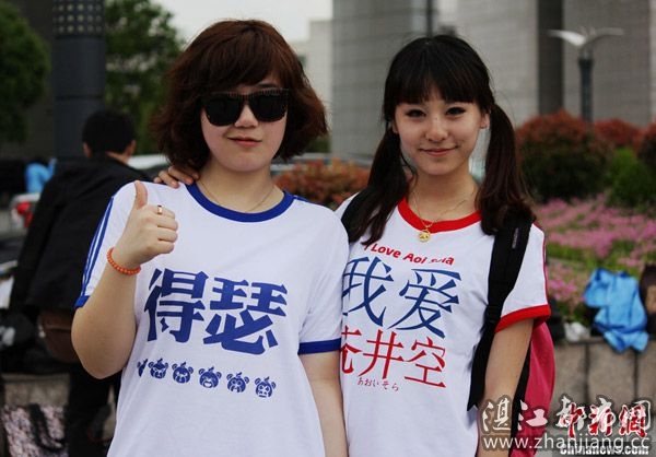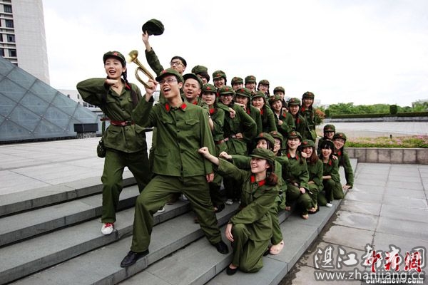 2012年5月9日,浙江工商大学艺术与设计学院毕业生们穿着印有网络流行用语的个性T恤,在学校行政大楼前拍摄另类的主题毕业照。