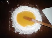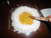 2)粉不能在盆内操作,和面皮采用“复叠法”,即边炒边压,不用手揉搓。