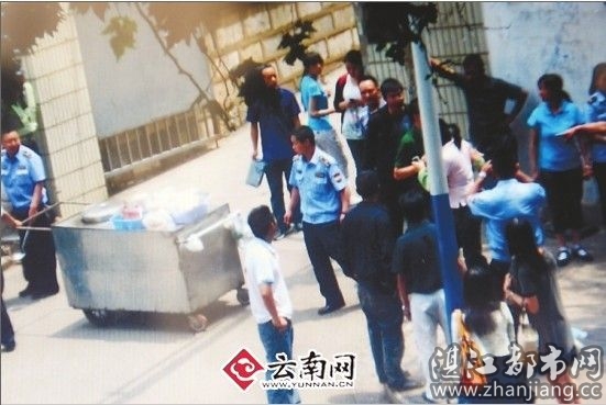 王世鹏的妻子说,上午11点40分,刚推着推车来到莲花池正街云南民族大学侧门,摆开摊,七八个城管驾乘面包车就来了。“下来,就对我们说要罚200元。我们回答因为刚摆摊,还没挣到钱,身上只有几十元怎么交罚款?随后,他们说不交罚款就收摊。当我们说钱不够收车也没办法后,几名城管按上去就开始打我老公。我想去劝,头上被他们狠狠地打了两拳。”