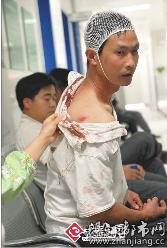 昨天下午3点,在云南省第二人民医院急诊大楼一楼,王世鹏刚做完B超检查。他头部包着纱布,左眼眼圈青紫,颈部、背部伤痕累累,扯破的白色衣服上染有鲜红血渍。