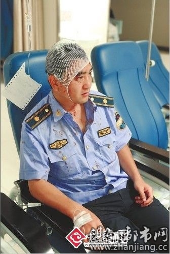 昆明市综合行政执法局五华分局华山执法中队的几名队员也来到了云南省第二人民医院急诊大楼。一楼凳子上,华山中队李副队长摸着头说:“后脑勺被砖头拍了一下,现在头还很昏,心翻。”