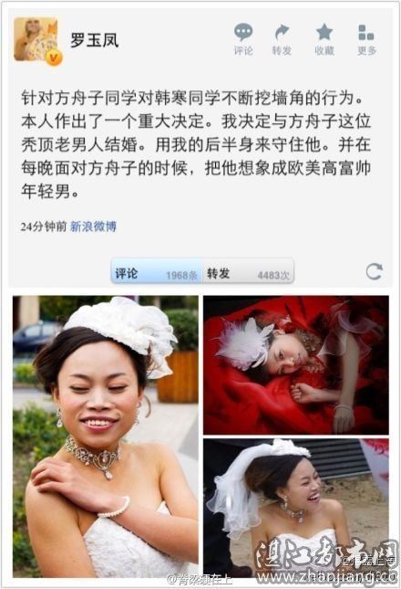 #方舟子凤姐最近有点忙# 继早上凤姐发博说准备下嫁方舟子后,可把各位网友忙坏了,微博上出现了各种方舟子和凤姐的结婚照,大有赶超“杜甫最近有点忙”之势,小兵罗列了一些,欢迎参观,没有笑的就别转了。