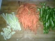 <br/>蒜切片,葱,胡萝卜,土豆,青椒都切丝备用。</li><li>8