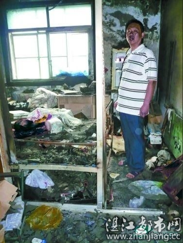 昨日上午随律师来到位于安阳市自行车家属院6楼的游永翠家,发现他们家至今仍是一片狼藉。狭小的两室一厅墙壁上、天花板上漆黑一片,屋内凌乱不堪,地上满是玻璃碴子和地板砖碎片,窗户上均没有了玻璃。家中冰箱、电视、空调等家电及摆设早已散了架,游永翠儿子的卧室里,棉被、书桌、图书等都已烧焦。游永翠说,他们现住在孩子的奶奶家,保留现场是为了让警方取证,但至今警方并没有人来取证。