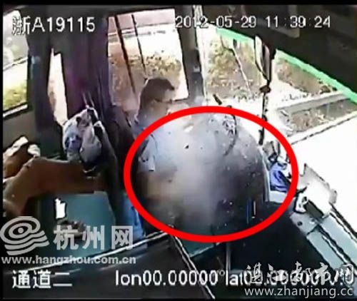 客车司机被突降铁块击中 忍痛救下全车乘客