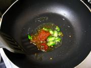 炒锅内放油,下青辣椒,加入冬阴功酱,炒出香味至油变色。</li> <li>3