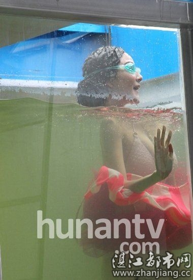 先是两位世界憋王在特制水箱中进行“憋王”大赛,之后刘雨欣、艾尚真和花样游泳冠军李婧等换上了蓬蓬裙,下到4米深的水底蜗居中换上指定服装。看起来柔弱的刘雨欣,虽然下水前对镜头表示害怕,但真人不露相的她在水底换装的时间仅仅用了58秒,丝毫不亚于专业选手,而她的身材更是让观众尖叫。