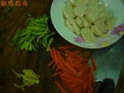 年糕片 胡萝卜丝 辣椒丝 葱姜末。</li> <li>2