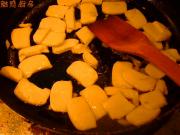 锅里加油放入花椒粒炸出香味,撒上葱姜末是炒出香味倒入年糕。两面煎上颜色。</li> <li>3