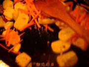倒入胡萝卜丝,搅拌均匀。倒入生抽、 耗油。</li> </ul> <ul> <li>4