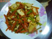 胡萝卜丝变色倒入辣椒丝炒得稍微变色加入少许精盐翻炒均匀成盘即可食用。</li> </ul>