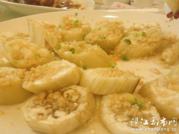 蒜蓉蒸茄子,看蒜蓉蒸带子多了,这个我还是第一次吃,茄子软软的口感配上蒜蓉也是不错的!而且做法简单,现场有位在酒店工作的先生告诉我,家里弄的话不用去皮,直接切段,蒜头剁碎后加入酱油、盐等调味拌匀后,下锅蒸个十分钟,起锅后烧个滚油,淋上去,再撒点葱花就成了,简单又健康。