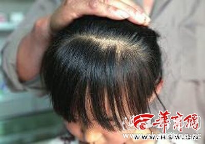今年8岁的嘟嘟(小名)在凤翔县南小里小学上三年级,3月时,考试成绩不理想被班主任唐老师打了。昨日,记者看到,近3个月过去了,嘟嘟头顶被拽下头发的地方还清晰可辨,有两块指甲盖大的头皮裸露在外面,头发仍没长出来。