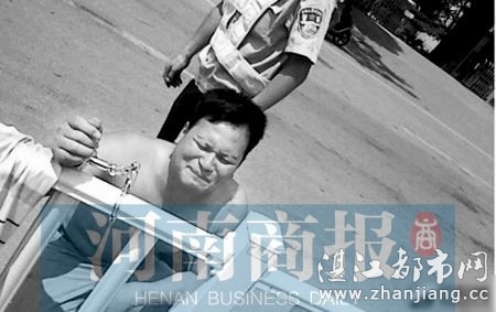 照片显示,警察将男子的一只手铐住,手铐另一端铐在隔离栏上。男子上身赤裸,上衣挂在身边的隔离栏上,面部表情很难受。报道中称,有目击者说,该男子疑因违法驾驶助力车被交警扣留。