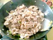 3:待香菇快熟时,加入芹菜杆,继续炒。</li> <li>5