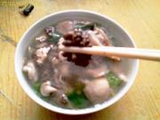 烧开后,加入水淀粉、芹菜叶和胡椒粉(胡椒粉不可以加多哦,一点就可以啦)</li> <li>8