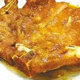 做法:1. 先将猪排煎香备用。然后将已切细片的洋葱下锅爆香。