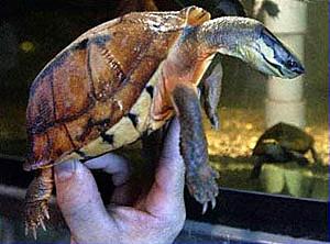 <br> 濒临灭绝的金钱龟,这是在美国的一处阁楼内发现的一只世界濒临灭绝的金钱龟。人们在这一阁楼内共发现并营救救了一千多只金钱龟,它们中有许多是作为食物非法进口的。 <br> <br> <br>