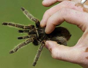 <br> 这是一只智利“狼蛛”。智利狼蛛是塔阑托毒蛛的一种,身长约7厘米,平均寿命6至11年。此蛛不织网,而是追捕猎物,对人类无危害,且可训练作为宠物。<br> <br> <br>