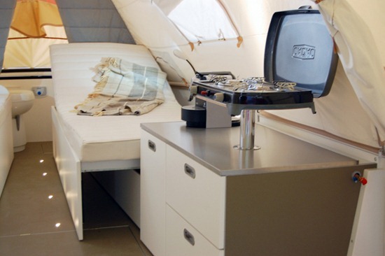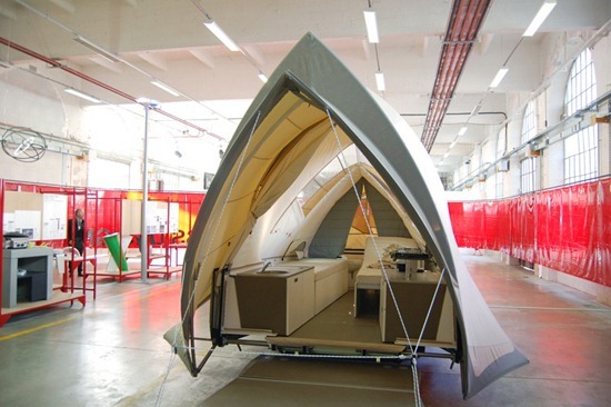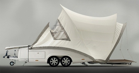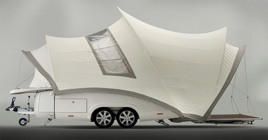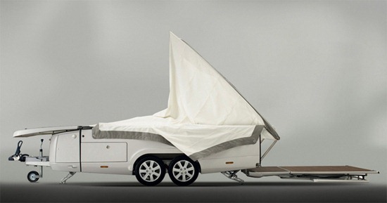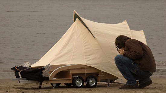 万恶的房价继续飙升吧!干脆用几平米房子的价钱操置一辆可以折叠和伸展的帐篷车,做一个背上没有房贷的自由人。这个帐篷车设计因为展开的形状与悉尼歌剧院的造型很神似而取名为“Opera”,完全折叠式看起来就是一辆很迷你的小拖车,展开来空间会膨胀数倍,有小床、马桶、工作台、厨房、冰箱、冷热水和暖气以及LED照明,当然,白天的时候天窗的光线就足够了。正是那句老话:麻雀虽小,五脏俱全。