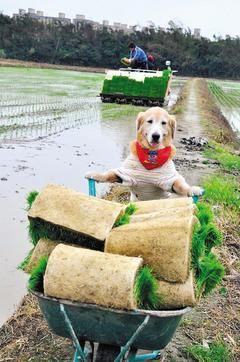 莺歌“心希望农场”的小狗Cherry帮忙推车,俨然是“心希望农场”的活广告。