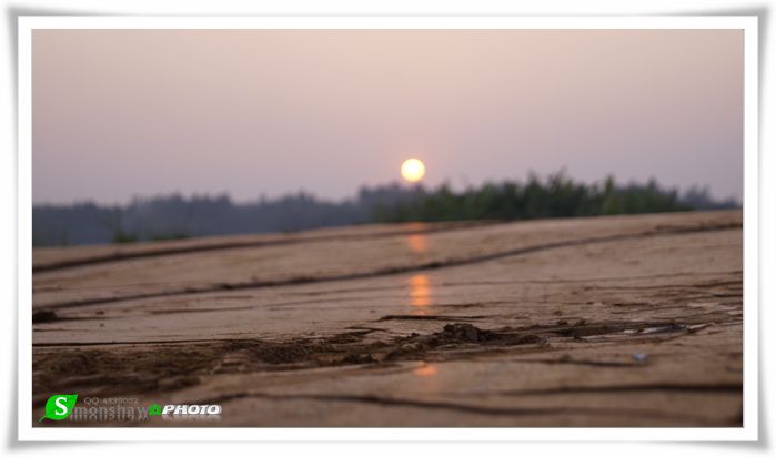 一条烂路,一辆破车,一轮奄奄一息的夕阳,是一条修缮中的大桥前的公路