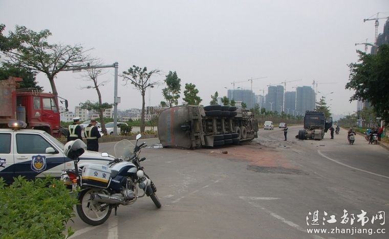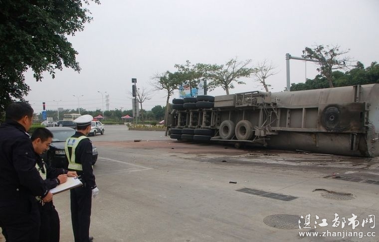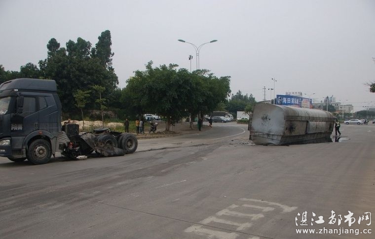 中午时分 一油罐车在椹川大道北站路口翻侧