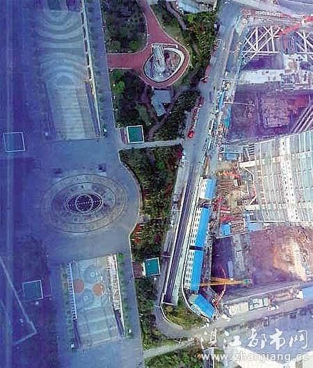 花城广场上西塔以东位置一处区域,在高空往下看形似"猪头"。