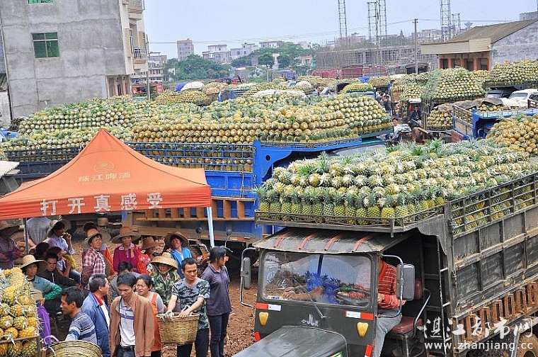 徐闻县盛产菠萝,在曲界镇有着一个菠萝交易市场,在每一年的2至5月份,这个市场每天有来自全国各地的菠萝收购商和从徐闻县东部乡镇用农用车拉菠萝来交易的果农,据了解,每天有二千至三千辆农用车装满菠萝来这个市场进行交易的,交易量达600吨 。