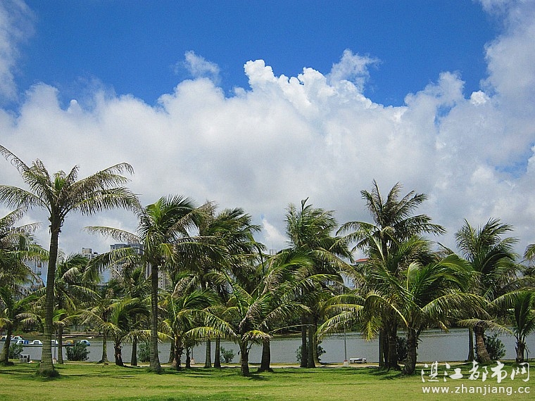 湛江都市网讯(图/文:燕燕于飞)夏日炎炎,霞山区海滨公园的月亮湖蓝天、白云、碧海、绿草、椰风,好一幅亚热带海洋风光画卷。