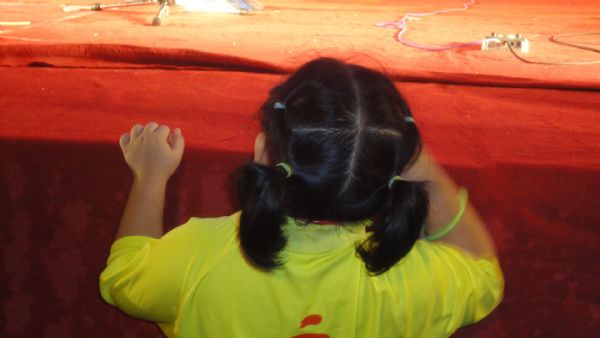 可爱的情暖小朋友上去送荧光棒
