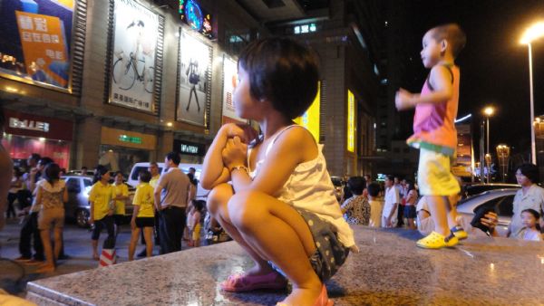 这里成了这个小盆友的舞台啦,一直蹦蹦跳跳,可是这么高要小心啊!奶奶在旁边着急着呢,伤不起啊!