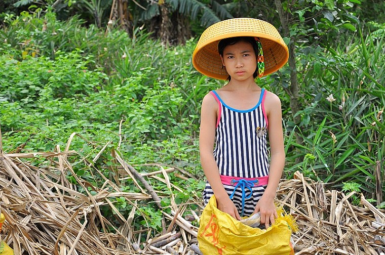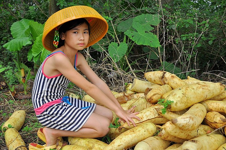 看多了美女,现在小女孩更让人稀罕啦!戴帽子的小女孩,小小年纪就一脸无奈,看来是干活把她给累到了
