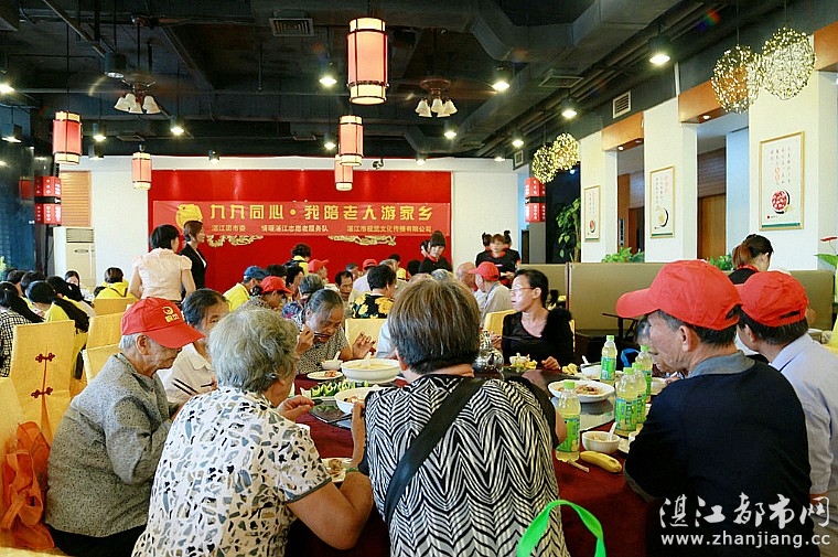 中午12时,全体人员到达霞山区食谋天下用午餐。用完午餐,志愿者们赠送纪念品给老人与小朋友。