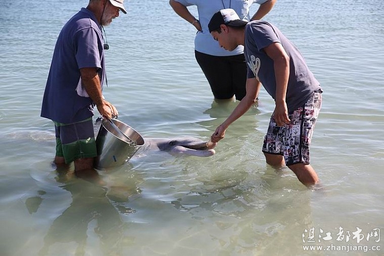 给海豚喂鱼