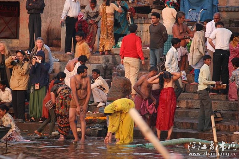 来恒河沐浴的人们就挤满了河岸
