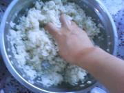 把糯米放到干净的盆里。放凉。温度大概是30度左右,手伸进去不烫就可以了。</li> <li>3