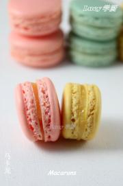 将杏仁粉糖粉混合物分两次加入蛋白中,用翻拌的手法混合均匀。提起橡皮刀,如果落下的混合物成带状,就可以了。这个时候就可以加入不同的色素,继续翻拌至颜色均匀。我就放了2滴,多了又会改变面糊的浓稠程度影响成功。</li> <li>5
