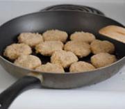 将所有材料减半均匀,取一小部分捏成团,压扁成汉堡状。</li> </ul> <ul><li>4