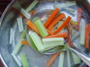 锅置火上加入少许盐烧沸,下入胡萝卜、芹菜条焯烫。</li> <li>5