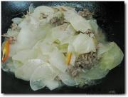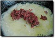 看萝卜片已经煮熟,放入牛肉丝。</li> </ul> <ul><li>7