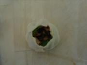 在面皮中间放馅,不要贪多,也不要太少,和包包子一样,只是最后1/3的口不捏就好了。</li> <li>8