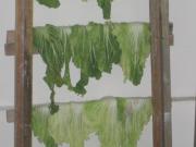 豆腐霉到1周左右,把干净的白菜叶挂起来晾蔫。</li> <li>6