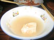 将霉好的豆腐在高度白酒内浸潮,或沿四周滚一圈,我使用的是52度的粮食白酒、最好将豆腐块放在白酒里、用小勺将酒均匀浇到豆腐表面上,这样豆腐不容易被夹坏。</li> </ul> <ul><li>10