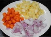 将土豆去皮,洋葱、胡萝卜洗净,切成大小适中的小块(我用了半个洋葱、半根胡萝卜,一个土豆)。</li> <li>3