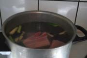 五花肉放入加了料酒、姜片和葱段水中煮8-10分钟。</li> </ul> <ul><li>4
