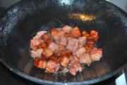 炒锅放1汤匙油烧热,先放肥肉部分中火扁出大部分的油(这个过程大约10分钟)。</li> <li>6
